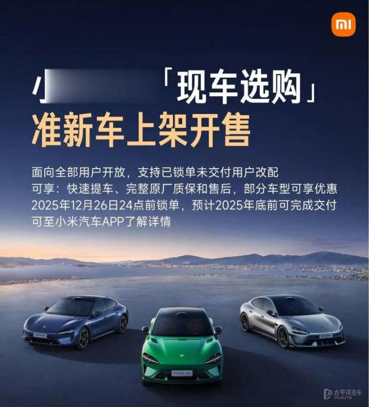 12月12日,小米汽车宣布在“现车选购”新增准新车源并开放销售。这是小米汽车首次向市场投放包含“准新车”在内的多类现车资源。即日起,用户可通过小米汽车APP直接选购全新现车、官方展车和准新车三类车辆。所有用户均可访问该平台,已锁单但未交付的用户也可选择改配现车。